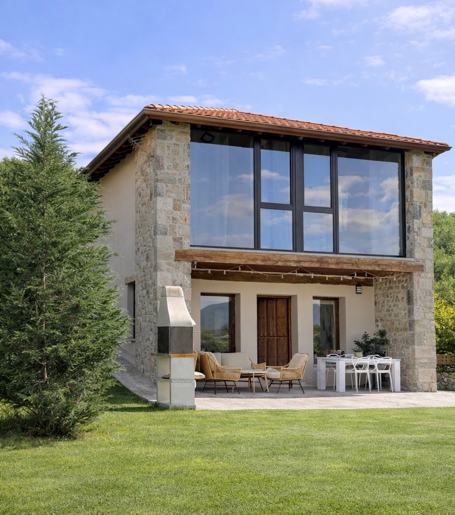 Disconnect from routine and reconnect with nature. Our rural house, surrounded by mountains, is the perfect retreat for those seeking peace and beautiful landscapes. Large windows fill the rooms with natural light and offer views of the surroundings. Just a short drive away, the coast and its stunning beaches allow you to enjoy both sea and mountains in one getaway. Natural materials and outdoor areas invite you to relax and unwind at your own pace.