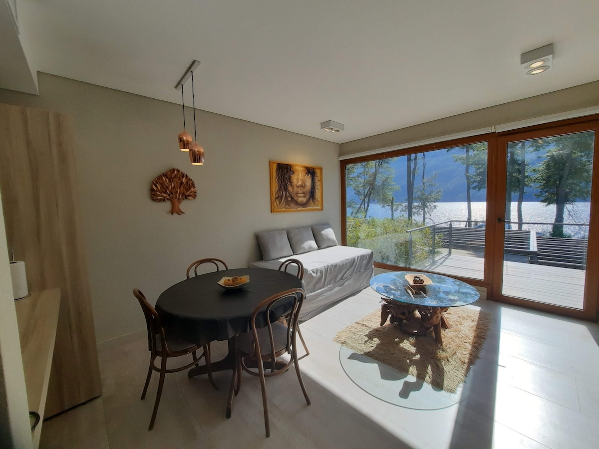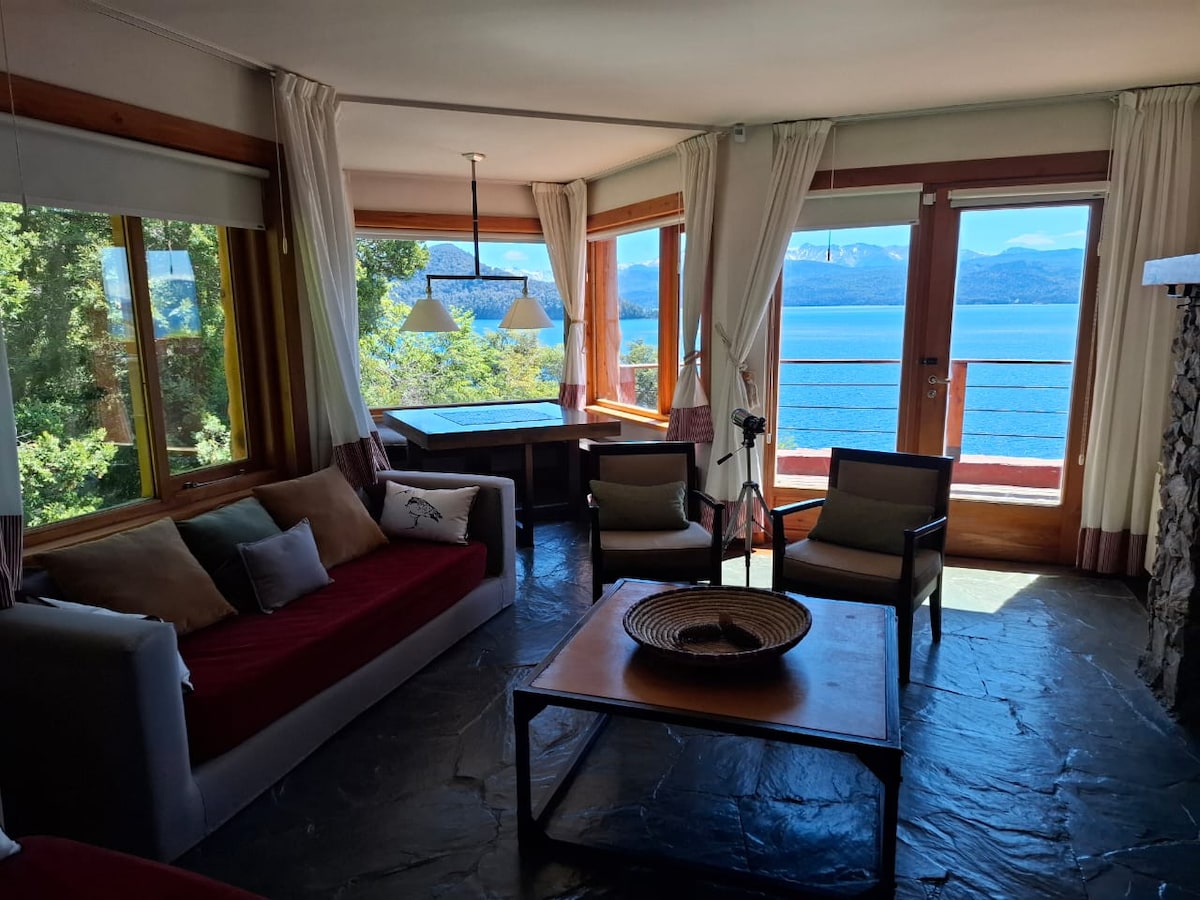 Departamento moniambiente de 50 mts2 con imponente vista sobre el lago y a la Isla Victoria en la zona de Llao Llao. Tiene un pequeño living, cocina completa con horno y microondas, cama king size que dan a un balcón terraza. Baño completo con bañadera Bajada propia a la costa de lago Servicios Wifi Balcón terraza con reposeras Ropa de cama y toallas se cambian c/ 5 días Secador de pelo Estacionamiento privado Exclusivo para parejas No hay desayuno No hay Tv Se cobra limpieza final usd20