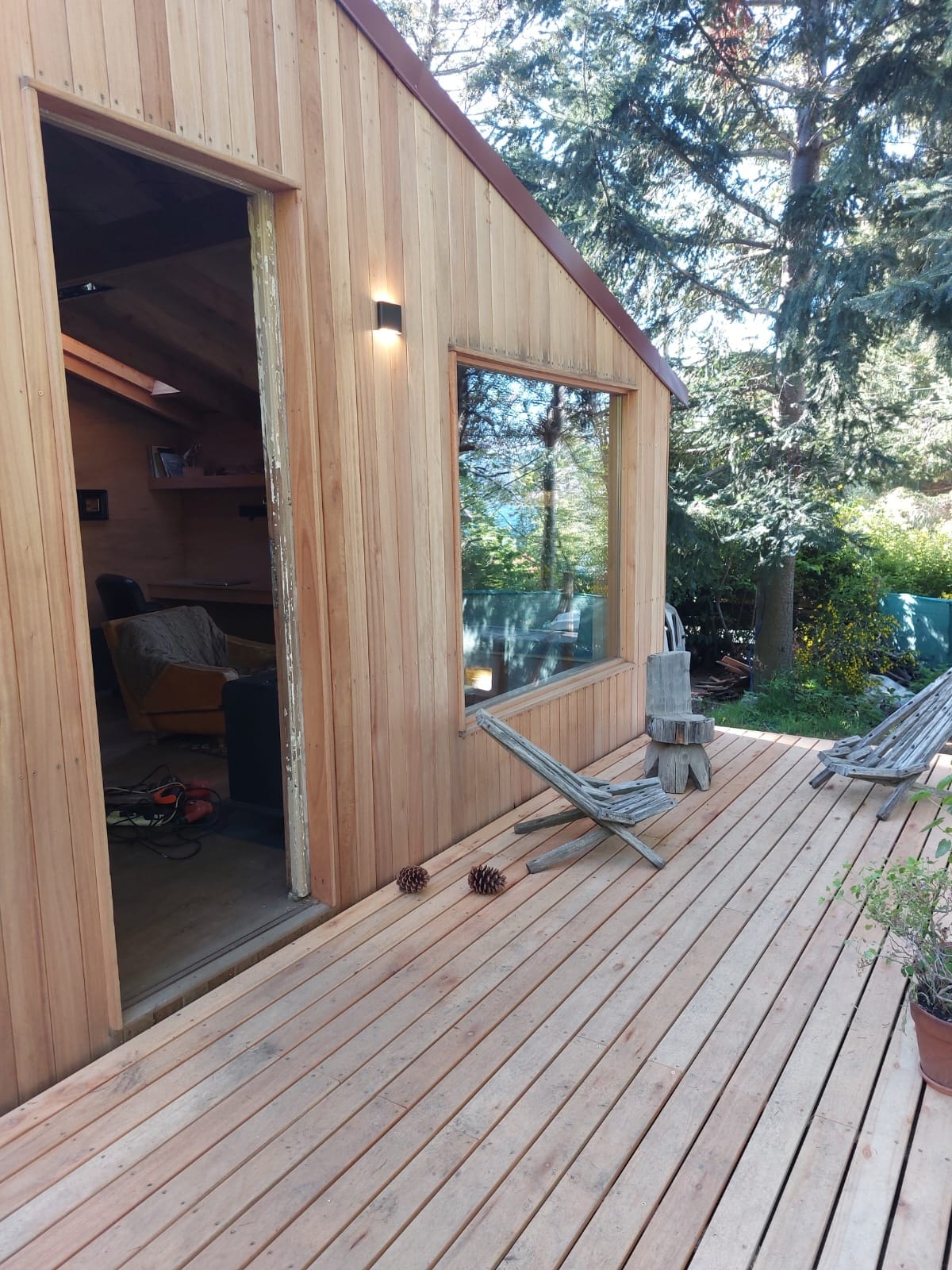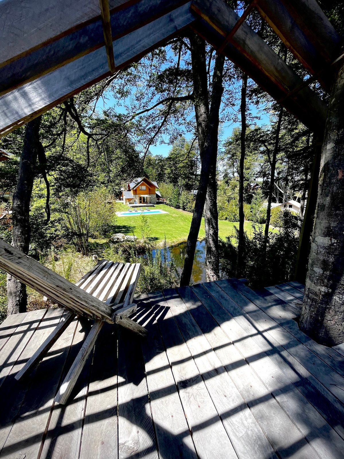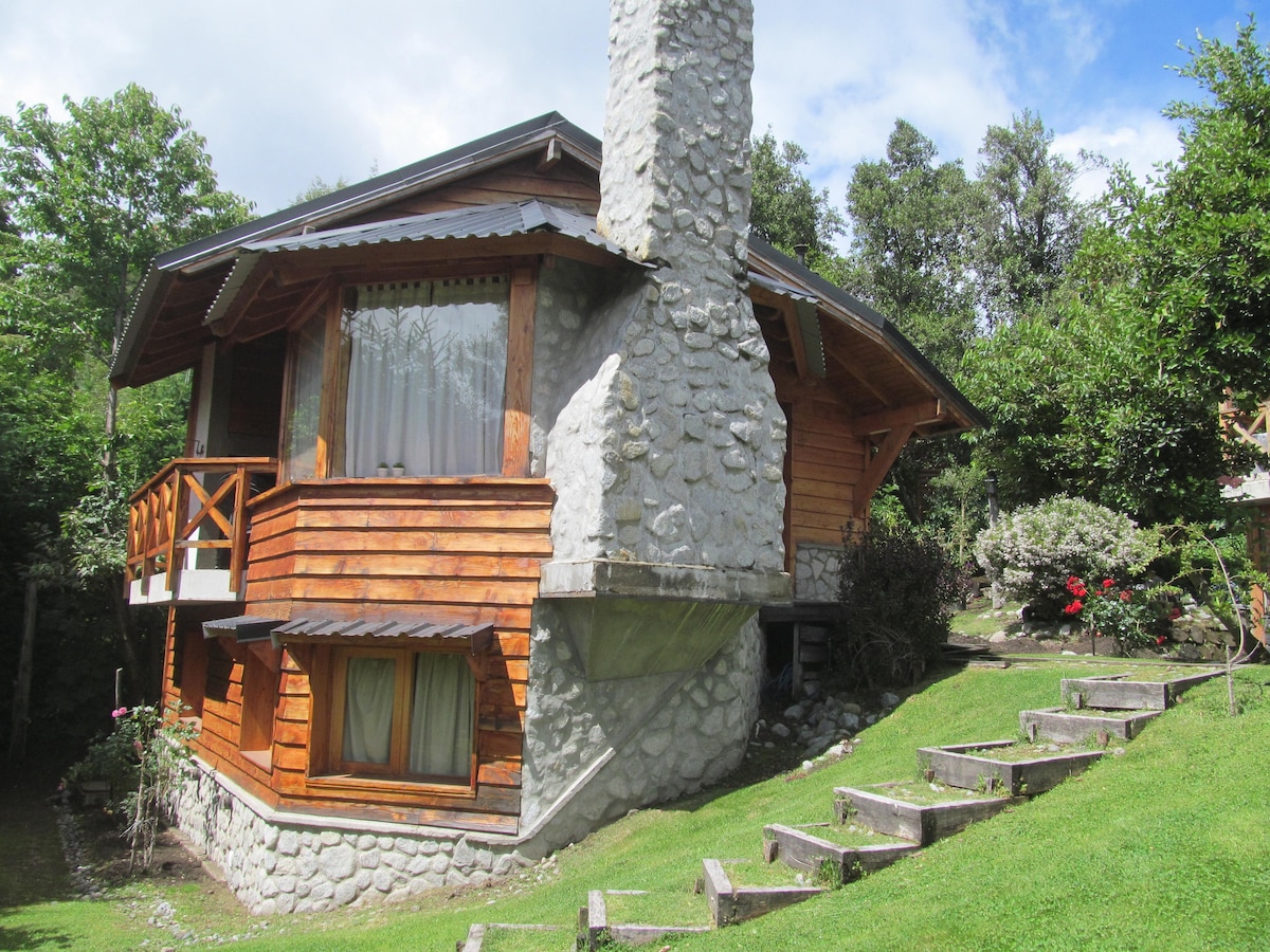 No es una casa cualquiera. De madera de cipres acerrado ahi mismo. Luminosa, amplia, bien aislada para asegurar el mínimo consumo de energía. Decoración de sencilla elegancia acorde al lugar, cuadros de fotos de Florian von der Fecht enmarcados con madera reciclada. sin vecinos, rodeada de bosque, de senderos y acceso privado al arroyo Blanco que limita la propiedad. El murmullo del Arroyo Blanco se interrumpe por el canto del huet-huet.