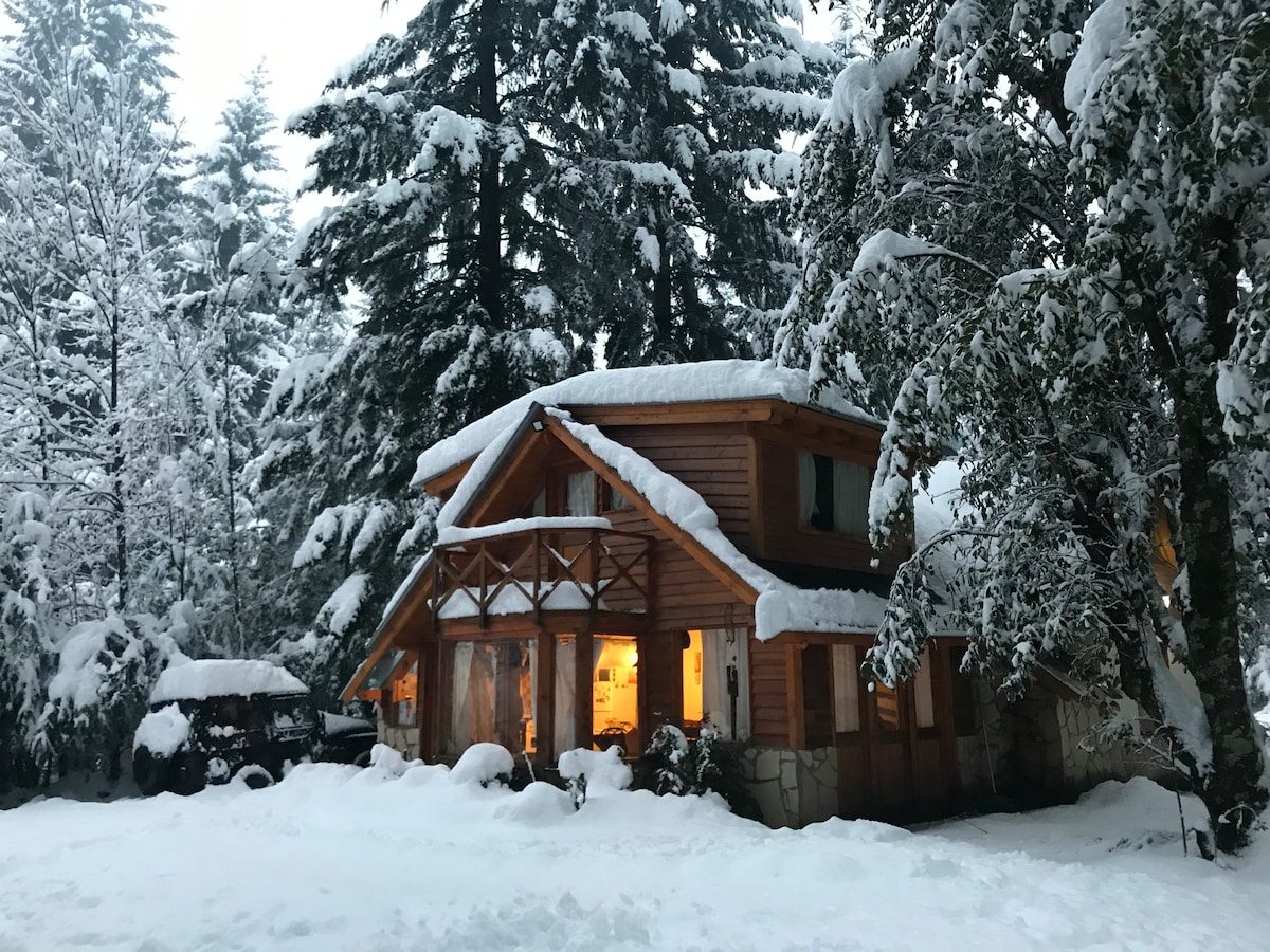 Disfrutá de una estadía íntima en esta encantadora cabaña rodeada de bosque. Cuenta con cocina completa, deck privado, baño con piedra natural y una acogedora habitación, ideal para parejas que buscan privacidad y tranquilidad. Ubicada en Circuito Chico, a minutos de Colonia Suiza, es perfecta para salir a explorar lagos, montañas y lugares típicos de la Patagonia. Al regresar, puedes utilizar Internet de alta velocidad, y continuar disfrutando de las vistas impresionantes de la naturaleza.
