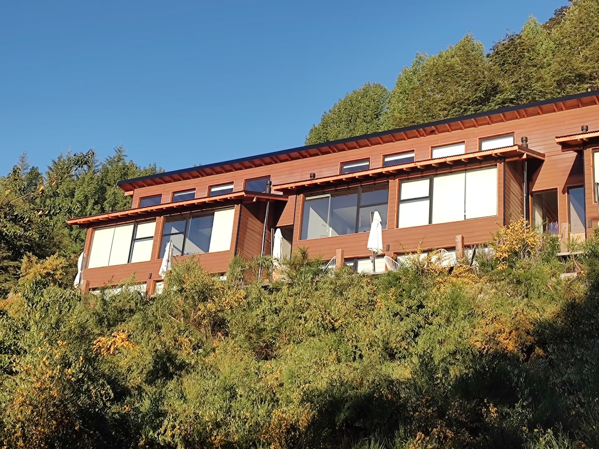 ¡Descubre nuestra cabaña de montaña con vista al lago, ideal para conectar con la naturaleza sin renunciar al confort! Disfruta de momentos acogedores junto al hogar a leños en el living, cocina completa para preparar tus platos favoritos, y un amplio deck para experiencias al aire libre inolvidables. ¡Tu refugio perfecto te espera aquí! La cabaña es parte de un grupo de 5 unidades dentro de la misma propiedad de 1 hectárea y esta construida junto a otra casa