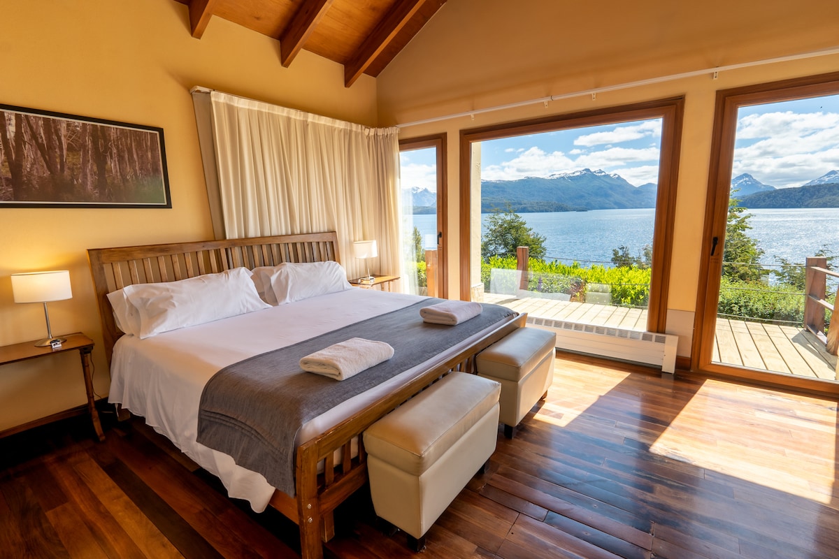 La Casa del Lago, with fabulous panoramic views of Lake Nahuel Huapi, spacious, elegant and comfortable rooms. A height experience, enhanced by gourmet proposals and moments of relaxation.<br>The house in Villa La Angostura has 2 bedroom(s).<br>Accommodation of 200 m².<br>It is located in an ideal area for families and surrounded by forest.<br>It has internet access (wifi), individual gas boiler, open-air parking in the same building, Television.