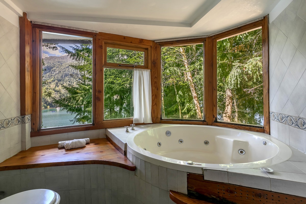 Relajate en este alojamiento único y tranquilo rodeado de bosque nativo. 130m2 cubiertos distribuidos en dos plantas con impactantes vistas. Cochera cubierta, parrilla, hogar de leños, Wi-Fi de alta velocidad por fibra óptica. Dos baños (el principal con hidro), cocina totalmente equipada, dormitorio matrimonial (bow window), dormitorio doble. Deck exterior con parque propio. Piscina climatizada disponible desde el 26/12/2025 al 31/03/2026