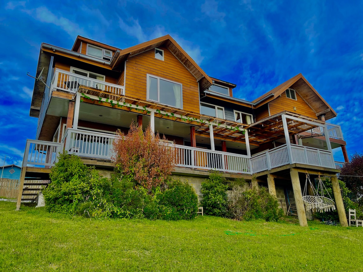 Casa Grande es un hostal boutique ubicado al inicio de la Carretera Austral, con vista privilegiada a la bahía y hermosos atardeceres. Construido en maderas nativas, ofrece un ambiente cálido y familiar. Cuenta con bar, fogón y capacidad para hasta 24 personas en 7 habitaciones, ideales para parejas y familias. A 5 minutos de la playa, 10 del Parque Alerce Andino y 15 de Puerto Montt, es el lugar perfecto para descansar y conectar con la naturaleza del sur de Chile.