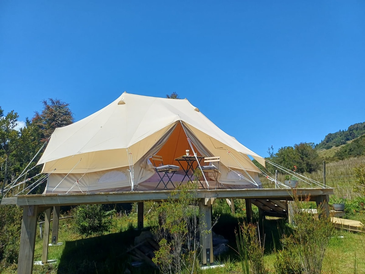 Este glamping es un refugio cómodo y acogedor en plena naturaleza de la Carretera Austral. Cuenta con cama king size, plumón, calefacción, electricidad e iluminación cálida, además de un proyector para noches de cine y desayuno incluido. Incluye toallas, frazadas, linternas y una carga de lavandería por noche. El baño es compartido, pertenece al camping, está limpio y es de fácil acceso. Ideal para dos personas que quieren vivir la naturaleza sin renunciar al confort.