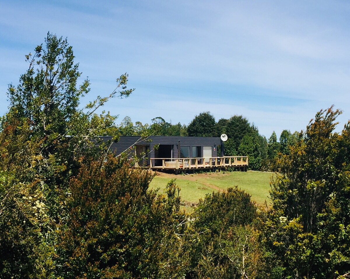If you want to live a Chiloe experience this cabin is ideal for you and your family. Wide, open, luminous, with incredible views of Chiloe´s landscapes. Here you will rest, disconnect from the city y conect with nature. Ideal for large families with kids. You can enjoy trekking through the forest, go to the beach to catch your own seafood, have a barbecue or watch the stars in the fire pit. Here you will fall in love with Chiloe.