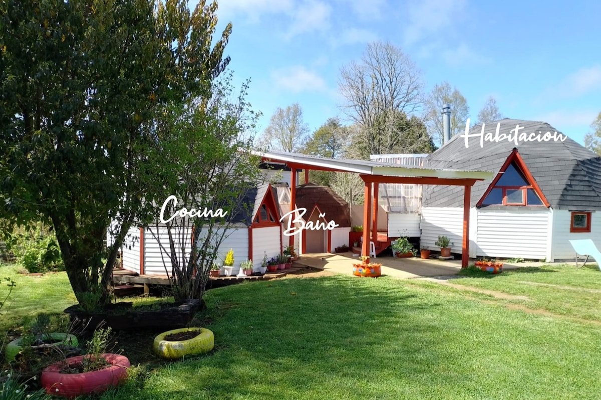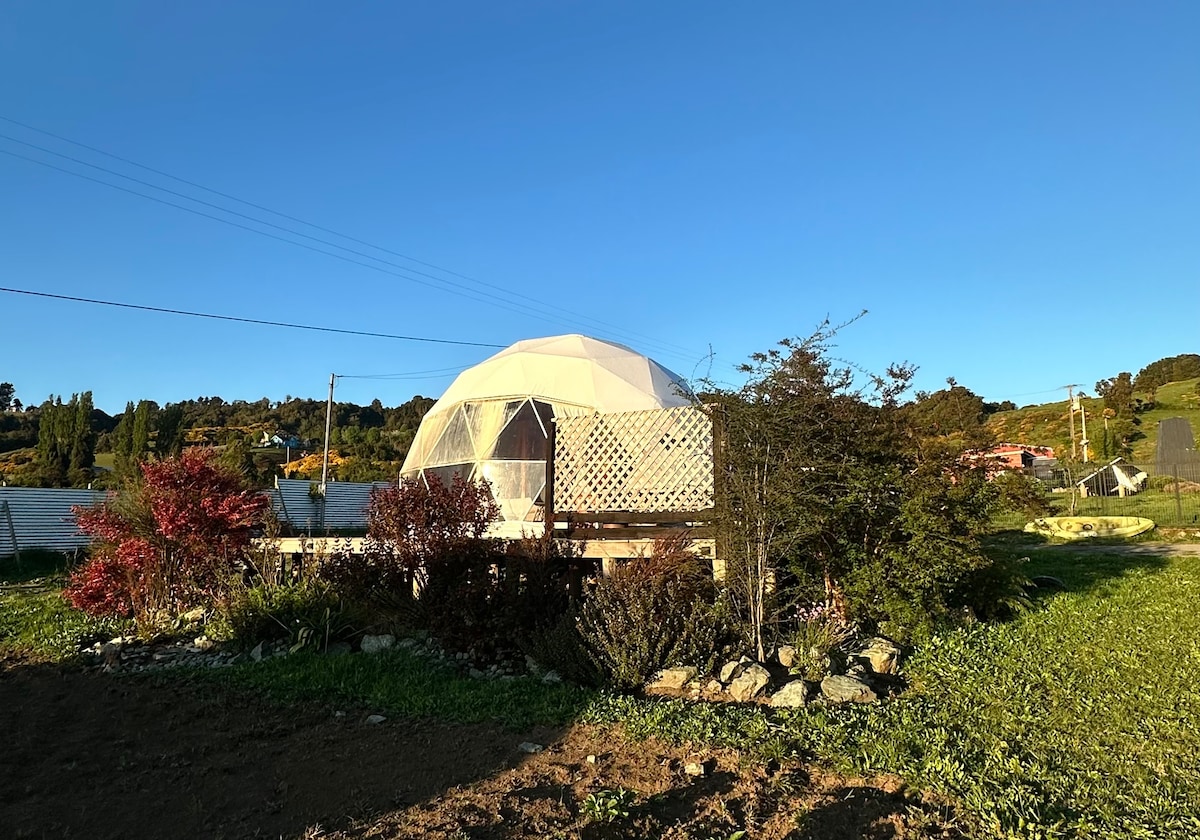 Lugar para descansar, desconectarse y disfrutar. Te ofrecemos un acogedor domo a 10 minutos de la plaza de Castro y 10 minutos de Dalcahue, consta con 2 dormitorios y capacidad para 4 personas, supermercado a un minuto, cercano a humedal en donde se realiza observación de aves migratorias (flamencos, zarapito, etc). Contamos con Wifi, calefacción a pellet, jacuzzi con insumos de spa, una cómoda sala de estar, gran tranquilidad y medidas sanitarias respectivas