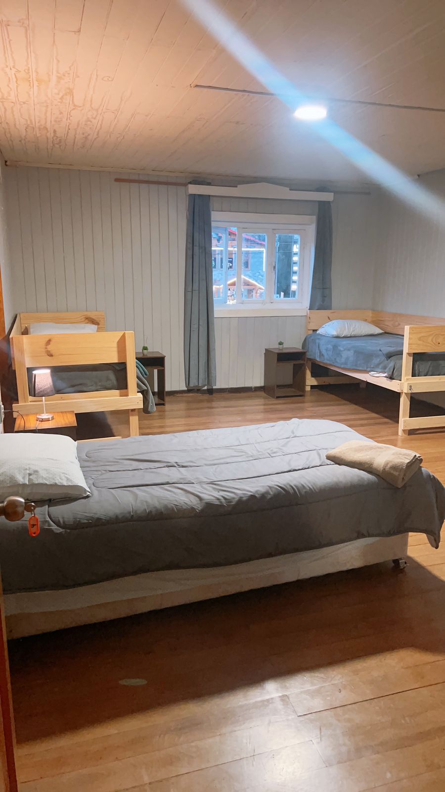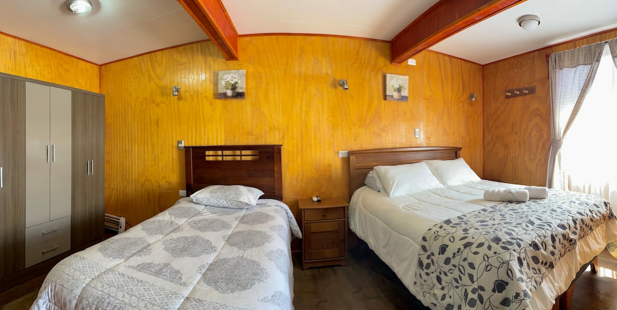 Habitacion familiar triple en hostal ubicado en llanquihue, en un tranquilo barrio residencial, a unos 50 metros del lago llanquihue y su costanera. A 12 min caminando de la estación de trenes