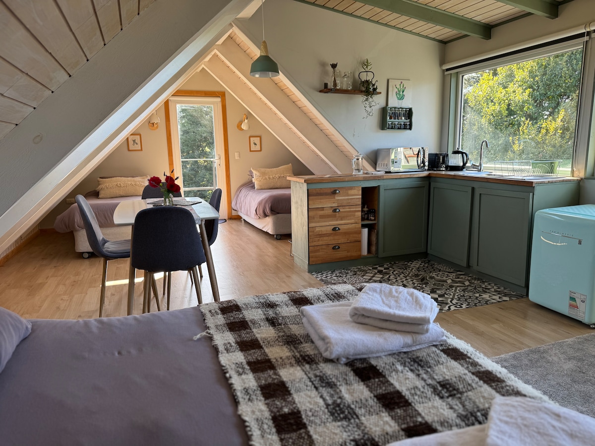 Hermoso loft con entrada independiente y con una increíble vista al lago Llanquihue y sus volcanes! Ubicación perfecta para llegar en pocos minutos a los principales lugares turísticos de la zona, Puerto varas 10 min., Frutillar 15 min., Llanquihue y sus playas 2 minutos, aeropuerto 30 min. Perfecto para desconectarse pero a la vez cerca de todo, inmersa en un precioso fundo lechero de la zona! A un minuto se encuentra playa privada del Club Gimnastico, preciosa playa para disfrutar el verano!