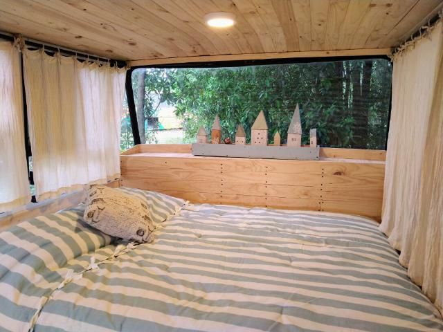 Microbús acondicionado con estilo minimalista y acogedor. Sistema de calefacción eléctrico. Incluye cocina equipada con lavaplatos, vajilla, microondas, frigobar, olla eléctrica y hervidor. Cuenta con terraza y baño privado en medio de altos canelos. Más de 200 hectáreas de bosque nativo para hacer trekking, picnic y expediciones fotográficas de la flora y fauna chilota.