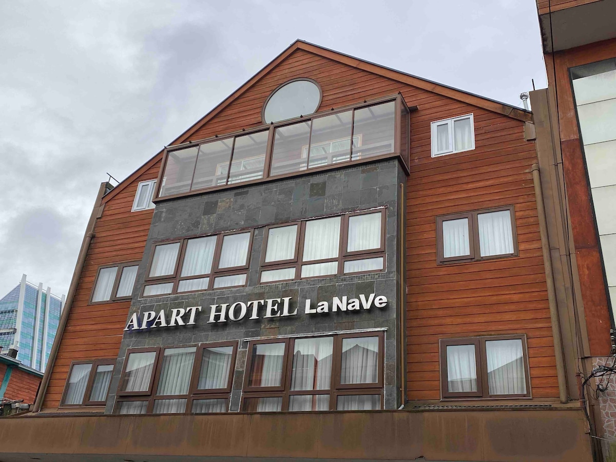 Relájate en este espacio tranquilo y de finas terminaciones. Frente al lago Llanquihue y playa, en plena costanera al lado de los mejores restaurantes de la ciudad. Si viajas en vehículo estarás a la distancia perfecta para visitar todos los atractivos de la ciudad y luego podrás disfrutar en el casino enjoy. Disfruta de una gran piscina temperada de 32 grados de temperatura con una vista panorámica a un parque interior del edificio. Todo en la ubicación más exclusiva de Puerto Varas.