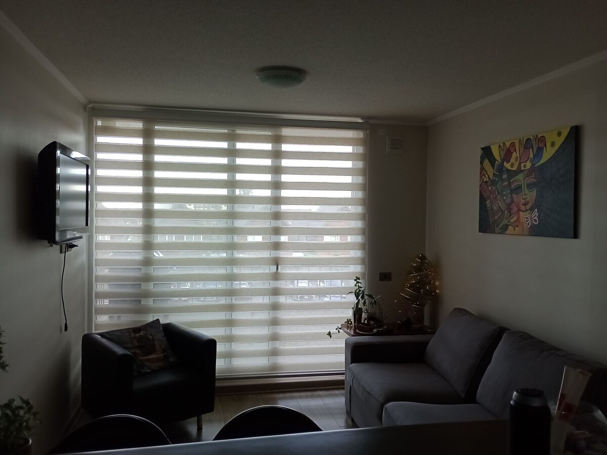 Este Departamento está situado dentro de un condominio en el sector dé Valle Volcanes un lugar tranquilo y residencial. El centro de la cuidad está a 10 minutos en vehiculo, tambien tenemos la estación de tren a la salida del Condominio. La cocina esta muy bien equipada y sus dos habitaciones son matrimoniales. A 5 minutos también se encuentra el autlet y a 10 minutos los mall de la cuidad. El Mercado de Angelmo está a 15 minutos, y para recorrer los alrededores, Puerto Varas està a 25 minutos.