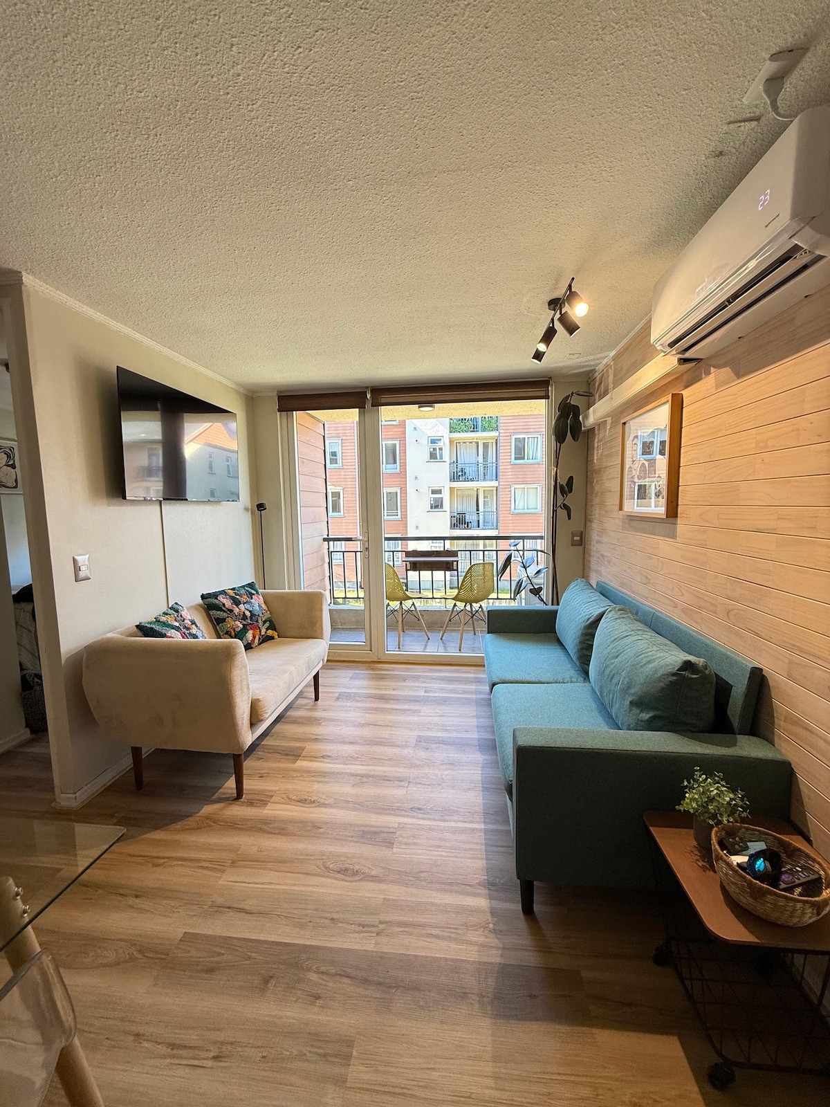 New apartment, with 4 or 5 person capacity. Master bedroom with 2 person bed, living has a sofa bed for 2 more people and also there’s a folding bed for a 5th person. The apartment is full electric. It is located one block from downtown Puerto Varas, 5 from the casino, 6 from the lake and next to a supermarket. Also, the building has access to laundry, gym and barbecue sector. There is no parking.