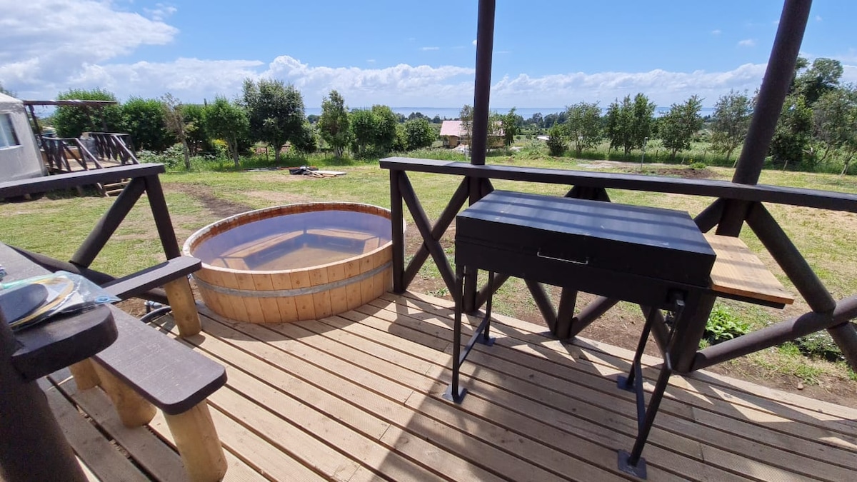 Get out of the ordinary and connect with nature on this unforgettable getaway. Located in Chamiza, 15 minutes from Puerto Montt through the beautiful Carretera Austral, you find this Dome Yurt so you can have the perfect stay and a great experience mixing relaxation and recreation with nature. Steps from the river that is located on the same property, you can enjoy nature in its full state. Extras: Outdoor pool and Jacuzzi. value 4 thousand P/P.