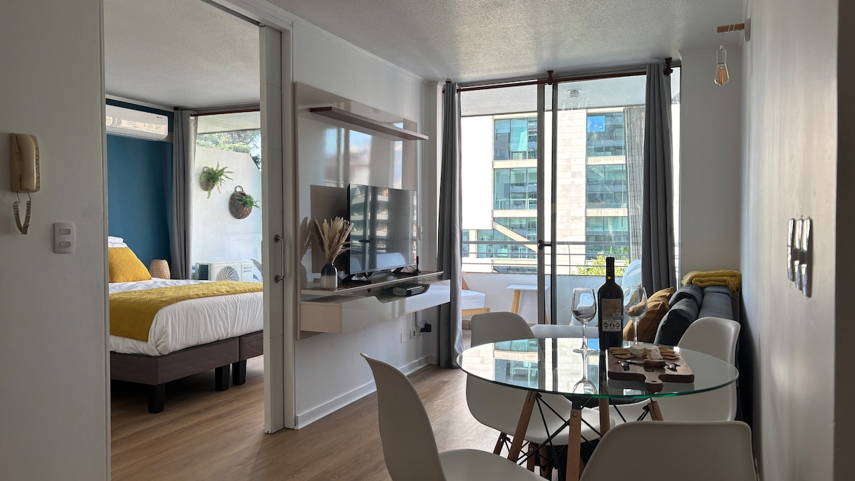 Experience Santiago from the heart of Providencia. Modern and stylish apartment, half a block from Los Leones metro and two blocks from Costanera Center. Surrounded by cafés, restaurants, and parks like Sculpture Park and San Cristóbal Hill. Bright, comfortable, and fully equipped for leisure or work. 🚗 Underground parking available for an extra fee.
