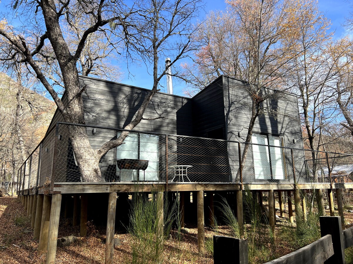 Acogedora cabaña inmersa en 6 hectáreas de Naturaleza, privacidad total. A 25 minutos de centro de ski, Termas de Chillán, 5-10 minutos de restoranes, bares y atracciones locales. Posee una amplia cocina, comedor para 8 personas, estufa a combustión lenta en el living, Smartv a la cual con tu celular puedes conectar a Internet y acceder a Netflix, YouTube y otras plataformas. Posee quincho techado y tinaja privada sin costo extra. Eco-Piscina en temporada veraniega.