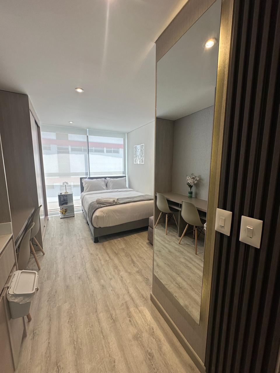 Recently renovated charming Studio. This place is strategically located: close to markets, museums, San Martin Mall, Monserrate, La Candelaria, La Plaza del Perseverancia, la Calle Bonita, National Park International Center (Financial zone), and countless restaurants, bars, and cultural activities that will make your visit to the city, an unforgettable experience. The building has a gym, coworking, pool area, and BBQ terrace on the top floor 360 View.