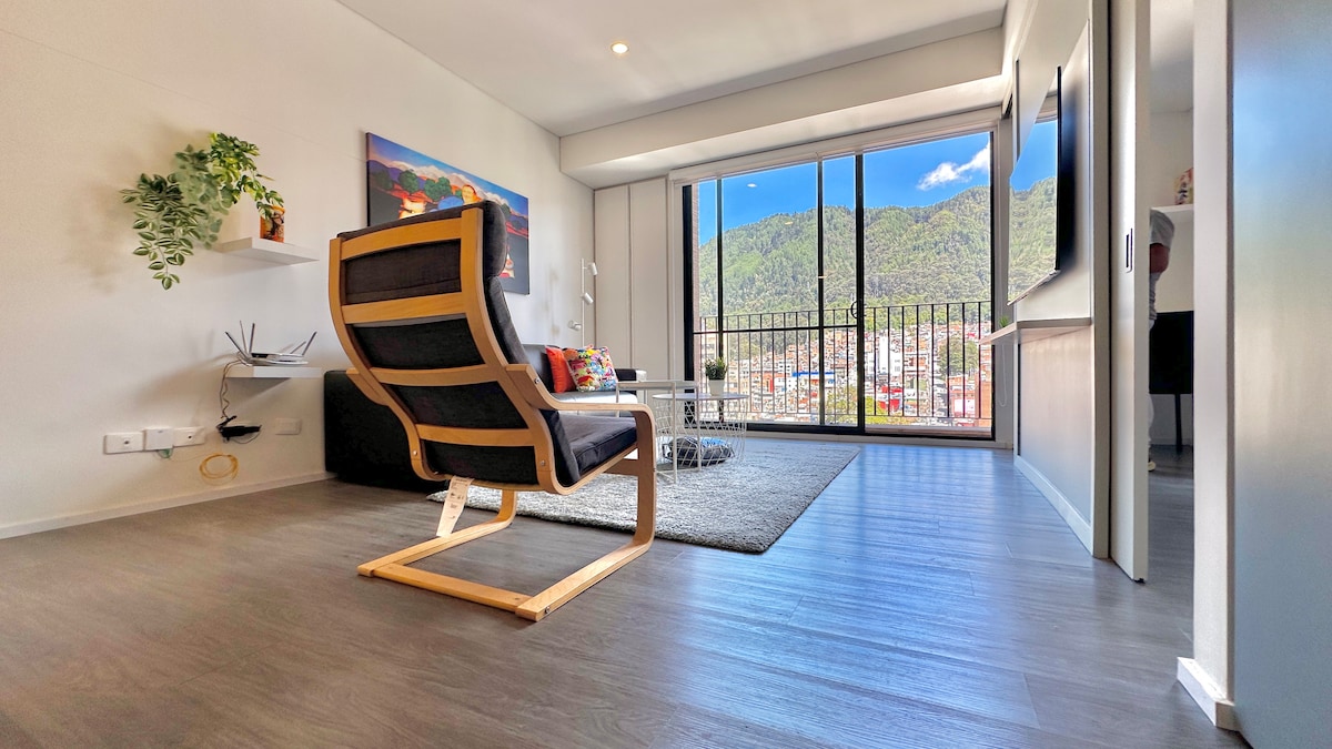 Spectacular Loft surrounded by nature, with a walkable roof and a 360 view of Bogotá. Perfect space to remote work and explore the historic center of the city. Surrounded by churches, murals, graffiti, museums, coffee shops, restaurants, architecture, and culture. It features a comfortable working or study area, fast and stable Wi-Fi. Its large kitchen and good equipment allow you to share great experiences in a spacious area.