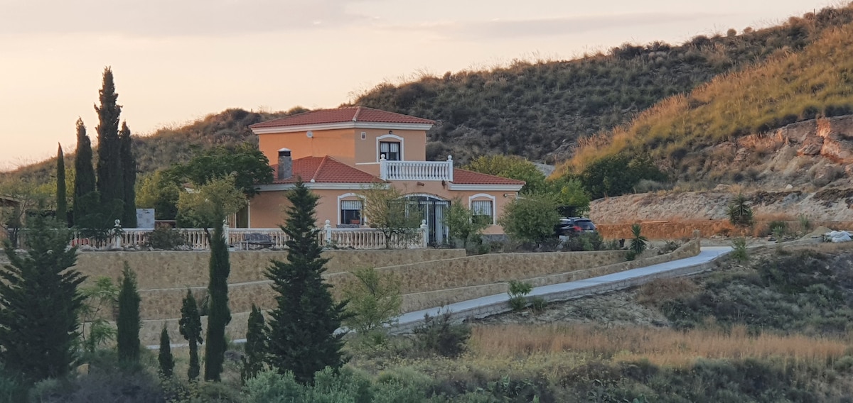A modern house located within the extensive grounds of the hosts property, Which has 2 private terraces with mountain views,pool,sunbathing area with luxury furniture ,outdoor kitchen,honesty bar,pool table,darts board and gardens for your enjoyment. Within walking distance there are 3 bars/restaurants. The traditional town of Antas with shops/bars/restaurants is 3 minutes by car. It is 15 minutes drive to numerous beaches, golf courses, waterparks and other attractions