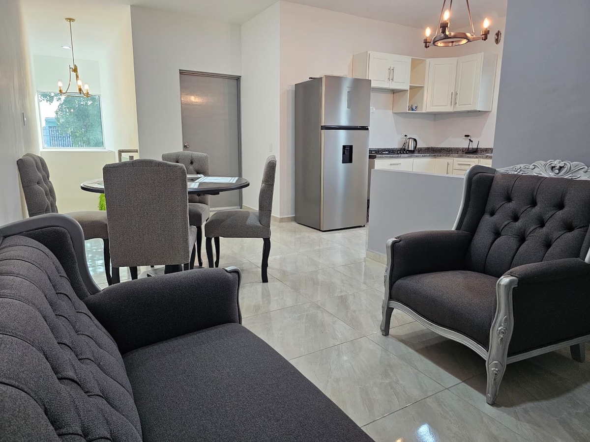 Departamento completamente refrigerado. Buena ubicación, ubicado en zona residencial. Tiene buena iluminación y refrigeración, cuenta con todos los servicios para sentirte como en tu casa. El departamento está cerca de universidades, unidades deportivas, centro comercial y hospital. El departamento se encuentra en el segundo piso. Cuenta con cocina, un baño completo con agua caliente, dos habitaciones. Sala, comedor.