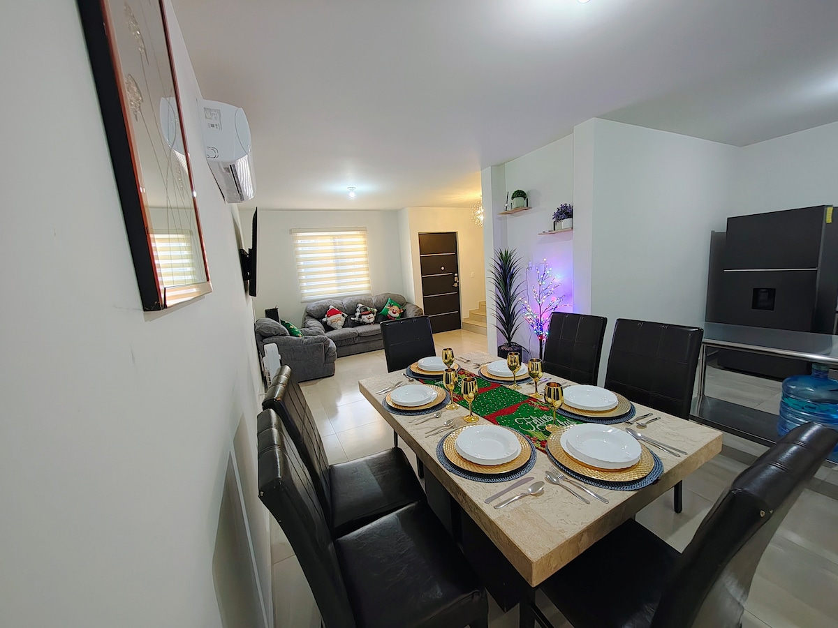 Casa cómoda y acogedora en zona muy tranquila y segura, ideal para descanso o trabajo (home office) totalmente equipada, totalmente refrigerada (sala, comedor, cocina, habitaciones), cuenta con Internet, televisión con netflix, a unas cuadras de un centro comercial y a 5 minutos del estadio de béisbol Chevron Park, se ajusta para hospedar de 6 a 8 personas. La casa se fumiga constantemente. Aplicamos descuento en estancias largas. Facturamos por monto total