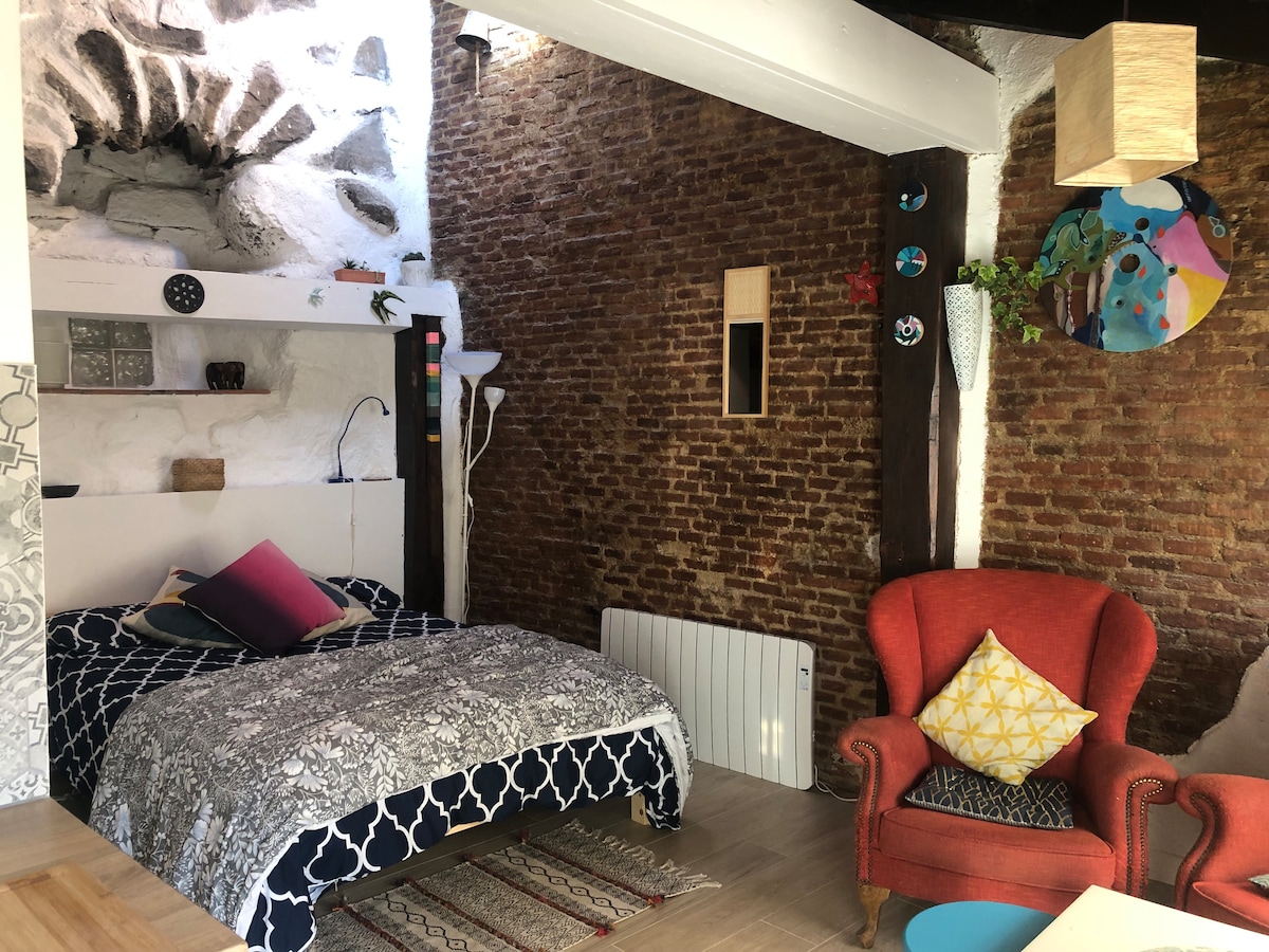 Casita cueva de pueblo muy acogedora con cocina y baño completo. Céntrica y fácil de aparcar en las calles cercanas. **ENTRADA AUTONOMA ** Cama de matrimonio, Fire stick de Amazon, no es TV por cable. Solo canales x internet(amazon tv, etc: usa tus cuentas para ver netflix, filmin, movistar) Cocina con todos los utensilios necesarios, microondas, cafetera italiana, sal y azúcar. Si vienes con mascotas hay que añadirla a la reserva y leer las NORMAS de las MASCOTAS. 🐕