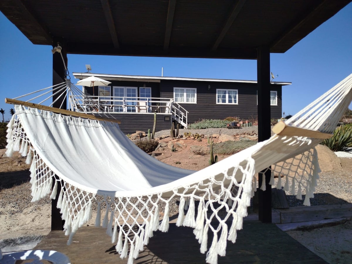 Lindísima, acogedora y amplia cabaña frente al mar en el mejor lugar de Maitencillo (2 horas de Santiago) muy bien equipada, se pueden hospedar hasta 9 personas cómodamente, condominio con piscina, quincho y estacionamiento privado. Terraza con vista al mar, living en terraza y playa en frente sin tener que cruzar una calle! Para disfrutar del mejor atardecer o pisco sour mirando a los niños sin que nadie interrumpa!! Condominio familiar se prohíben las fiestas!! Solo se arrienda por Airbnb.