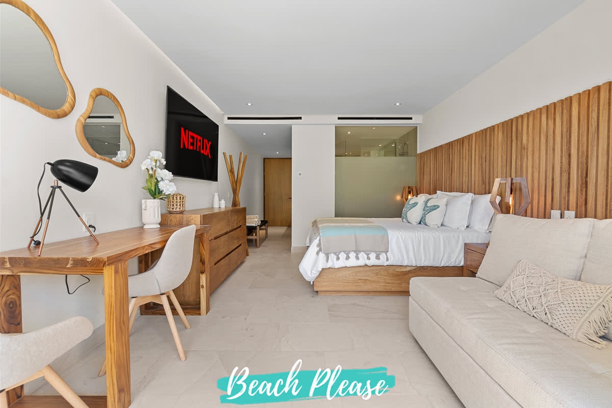 Beachfront studio in Harbor 171 with direct beach access, a stunning rooftop infinity pool, and a luxury ocean-view gym. Enjoy two ground-level pools with loungers, a king bed, fast WiFi, and a well-equipped kitchenette. Just steps to restaurants and shops, and minutes from downtown PV and the airport. Perfect for couples, solo travelers, or remote workers seeking sun, comfort, and convenience.