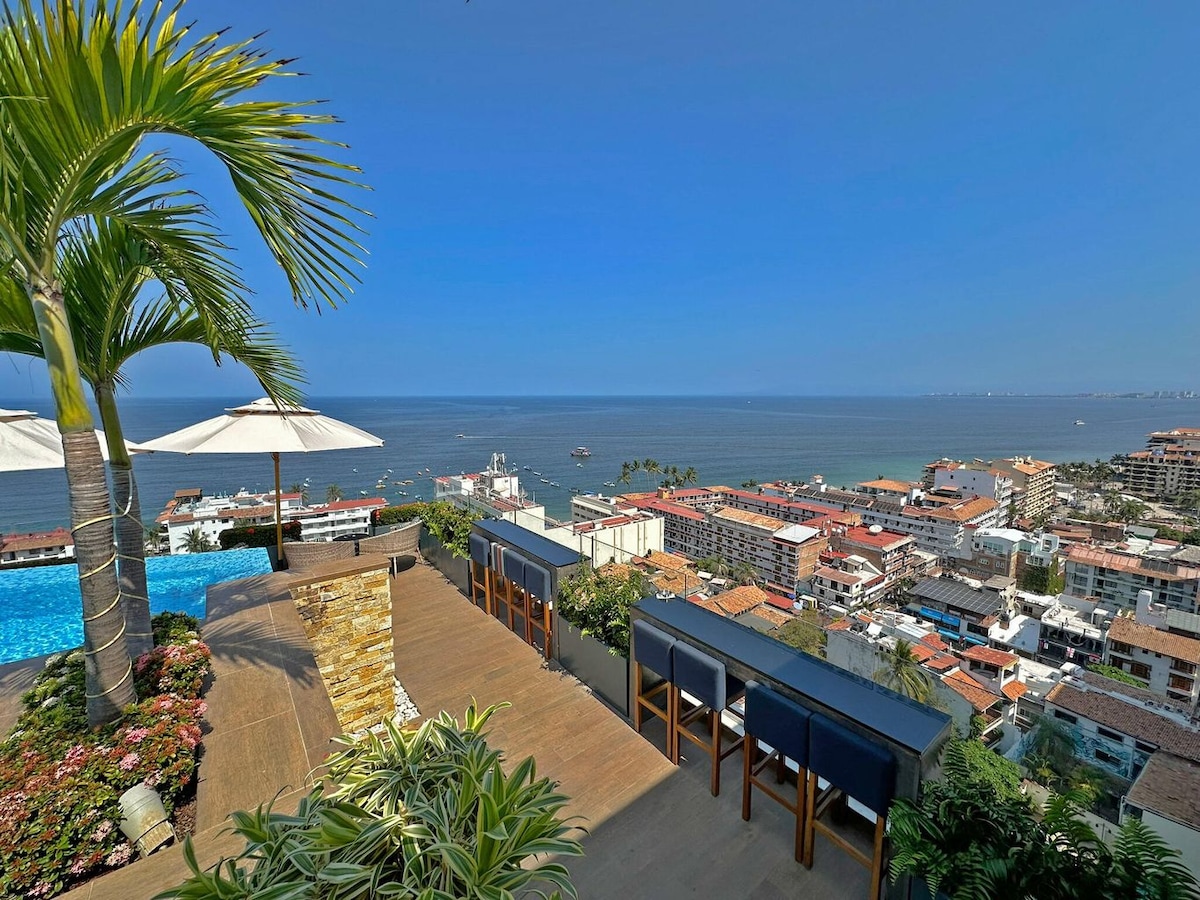 Little Piece of Heaven, Breathtaking 360° views of the ocean bay, downtown and mountains from the phenomenal rooftop, infinity pool and other amazing amenities. Charming condo with modern decor in one of the newest buildings, "Avida", situated in Romantic Zone. Avida is located in the most popular neighborhood in Puerto Vallarta, known for its sandy beaches, Los Muertos Beach, Cafés, Restaurants, Bars, Shopping, Romantic walks and nightlife. The best location in Puerto Vallarta!