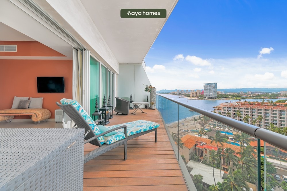 This modern brand new condo features 2 bedrooms, 3 bathrooms, and a studio, accommodating up to 6 guests! The wrap-around corner balcony offers stunning views of the pool, golf course, and Puerto Vallarta sunsets. Located in the brand new VGolf tower, providing the perfect setting for outdoor living and relaxation. The open-concept living area combines dining and living spaces, and it comes fully equipped to ensure a comfortable and enjoyable stay. We look forward to your upcoming stay!!