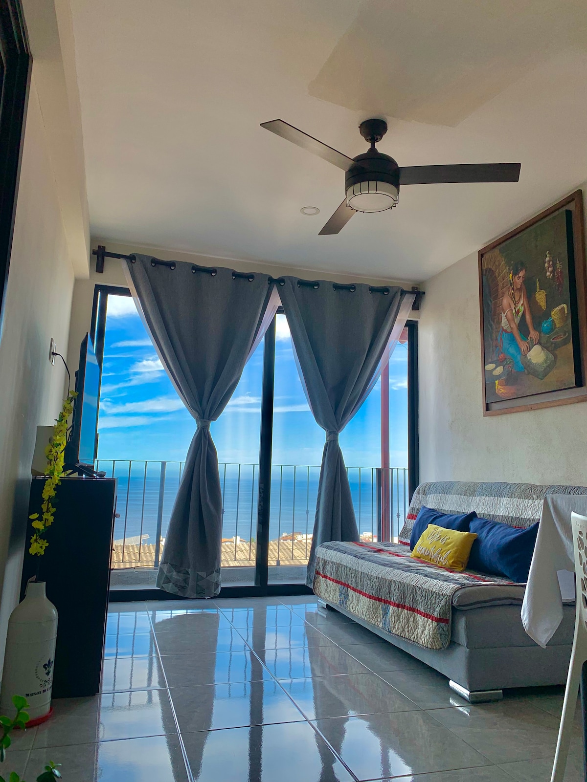 A spectacular PANORAMIC OCEAN VIEW Penthouse Loft steps from the BEACH and MALECON, with your own INFINITY POOL+all services and comforts, fully-equipped kitchen, AC, quality bed, waterfall shower, Wi-Fi, Smart TV, and the BEST VIEWS to admire Incredible SUNSETS and FIREWORKS every night, you may even find some Whales splashing over the Bay from your bed!! Walk to tons of restaurants, shops, art galleries, markets, or sunbathe at the many outdoor spaces, pools and decks... Welcome to Paradise!