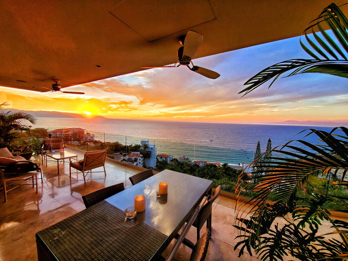 Located on the ocean just 100 steps from the sand! This exclusive modern tower was completed in 2020. Beautiful and most exclusive area of Puerto Vallarta known as Lower Conchas Chinas. Our modern 2x2 is approximately 1500 square feet. 180 degree ocean views and additional views of the mountains, colorful pier and the Malecon. Perfect location to enjoy Zona Romantica (walking distance or short uber) and then come back and relax to the sound of the ocean. Check out early reviews below!