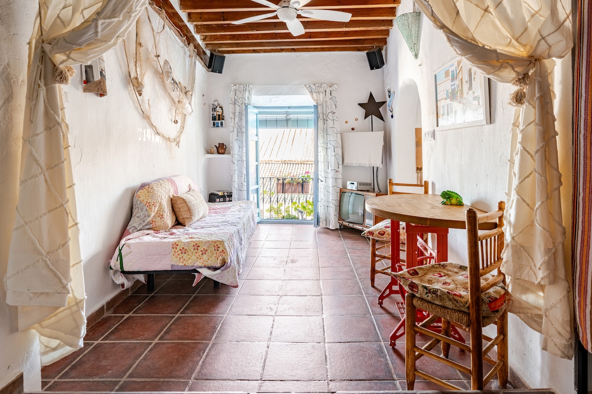 POR FAVOR, ANTES DE RESERVAR LEE LA DESCRIPCIÓN Y LAS "NORMAS DE LA CASA". Casa rústica para 2 con terraza privada. En el casco antiguo. Con aire acondicionado/calefacción. También hay ventiladores de techo. Conexión Wi-Fi alta velocidad (fibra óptica). Las playas están a solo 25 minutos. En verano evitas la masificación que se produce en la costa. Y también, a diferencia de la costa, encontrarás todos los servicios: bancos, farmacias, centro de salud, supermercados, bares, tiendas artesanía etc