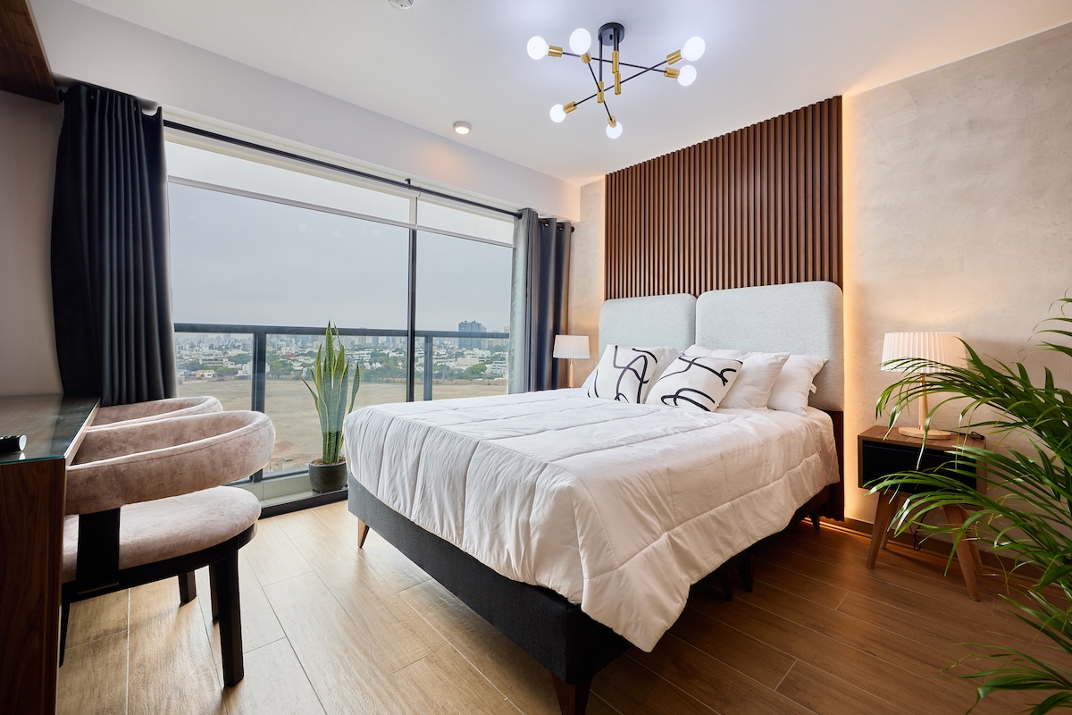 Departamento de estreno completo totalmente equipado que esta ubicado en una zona estratégica de avenida principal en Lima, Perú. Con áreas comunes en el edificio para que hagan de tu estancia una experiencia única. Está creado con la intención de ofrecer un espacio cálido y acogedor a mis huéspedes, además de unas vistas panorámicas excepcionales que te permitirán disfrutar de las puestas de sol y de la belleza de la ciudad.