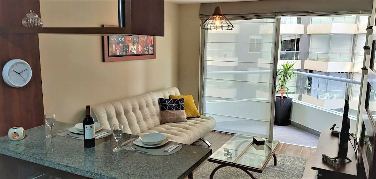 Modern fully furnished apartment, ideal for long stays. Features high-speed Wi-Fi, a 65” Smart TV with Netflix and Disney+, a fully equipped kitchen with espresso machine and water filter, washer-dryer, queen-size bed, and a balcony. The building offers a swimming pool, gym, and coworking area. 24/7 self check-in, smartkey, free parking, and 24-hour security. Strategically located in San Miguel, close to universities and shopping centers, and less than 20 minutes from the airport.