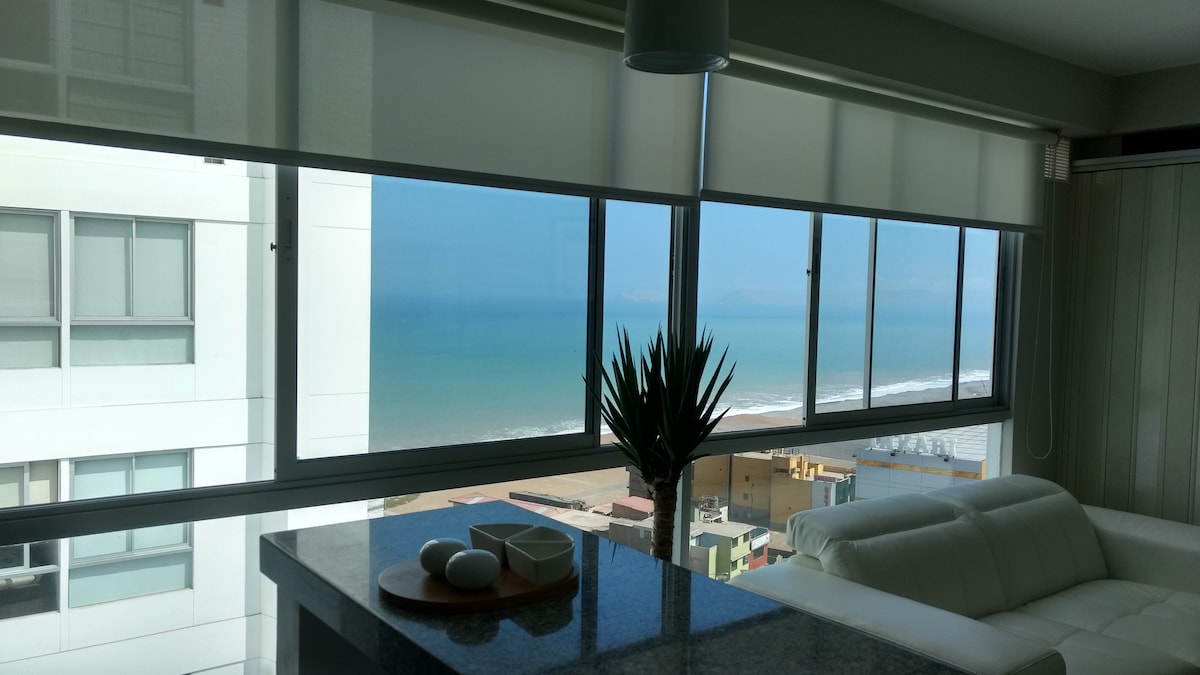 Cozy studio right across from the San Miguel boardwalk and Media Luna Park! Walk by the ocean, relax, and enjoy quick access to Costa Verde, Miraflores, Barranco, Arena 1, Costa 21, and the airport. You'll have 24/7 security, fast Wi-Fi, and a Smart TV with Netflix, Disney+, HBO, Prime Video, and YouTube Premium. Perfect for travelers looking for comfort, great views, and a peaceful stay by the sea.