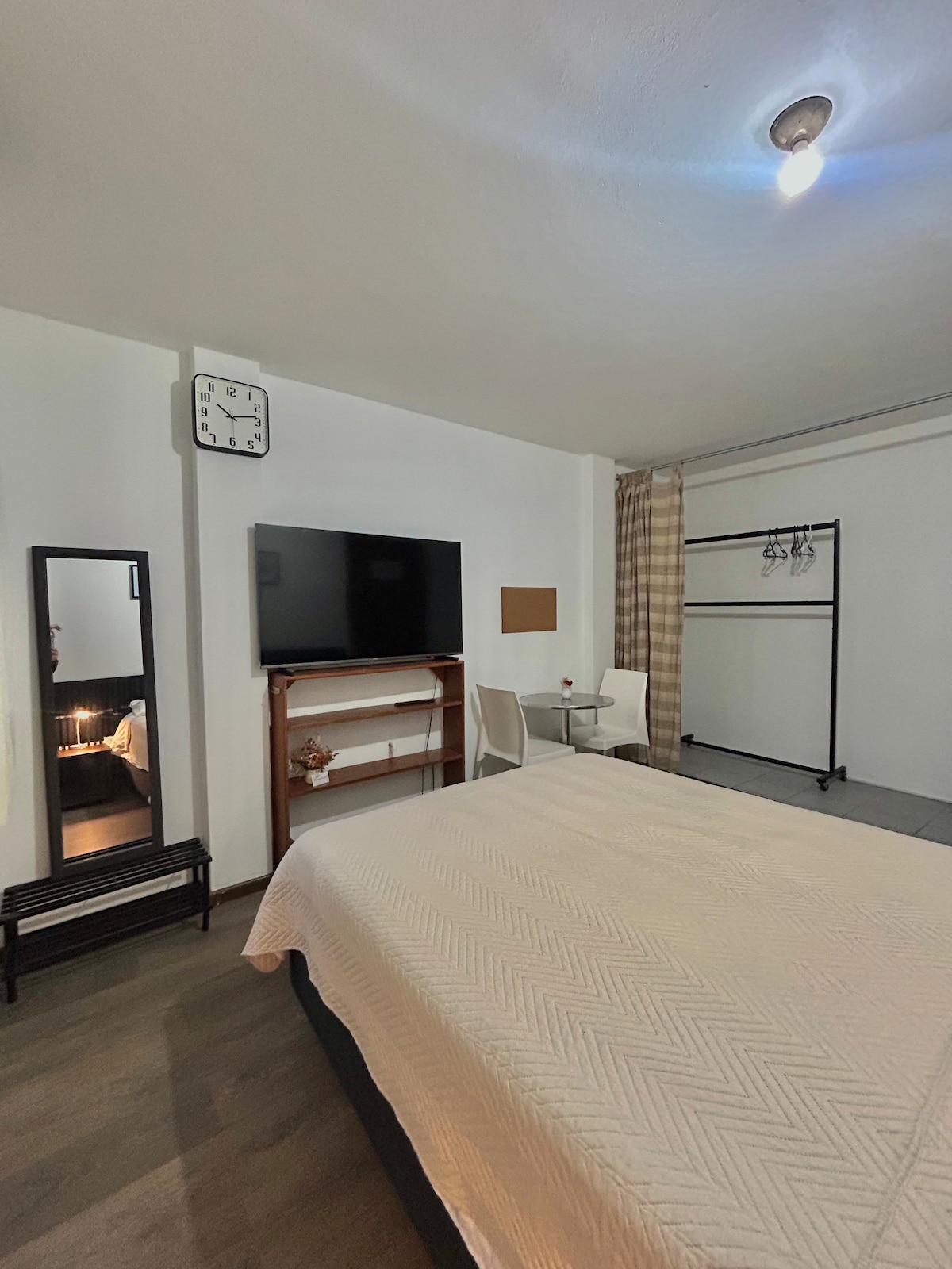 Mini depa con habitación, cocina equipada y baño privado. Entrada Independiente en edificio con Cámaras Exteriores. Remodelado, Iluminado y Ventilado, Cama 2 Plazas, TV Smart, Refrigeradora, Microondas y otros. Buena Ubicación a 10 minutos de la Universidad San Marcos, 8 de la PUPC y 5 de la URM, zona tranquila y céntrica rodeada de parques , cerca a Avenidas Principales, con múltiples líneas de Transporte. A 15 minutos de Plaza San Miguel, cerca a Museos, Supermercados y Diversos Restaurantes.