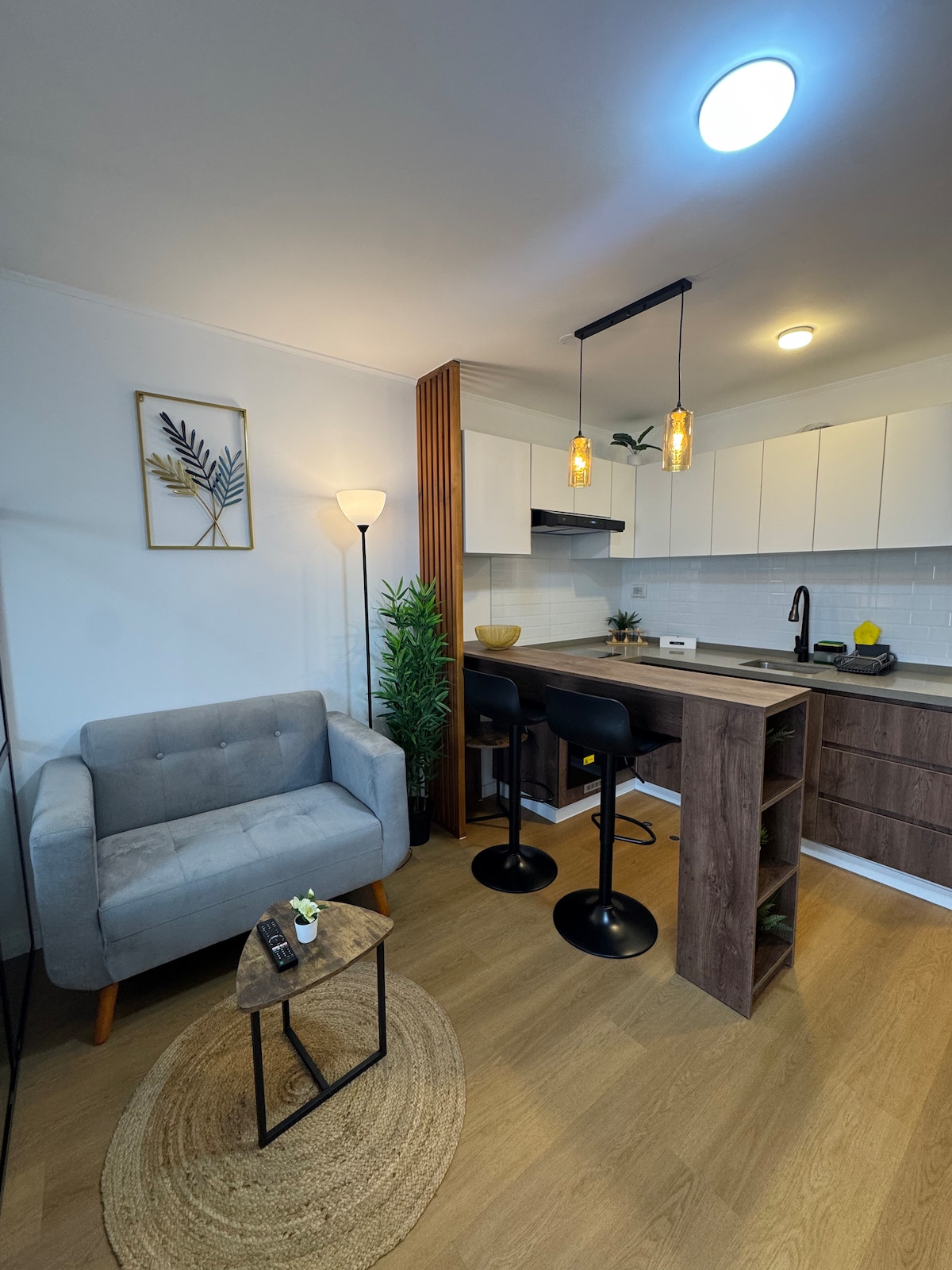 Modern fully furnished apartment, ideal for long stays. Features high-speed Wi-Fi, a 65” Smart TV with Netflix and Disney+, a fully equipped kitchen with espresso machine and water filter, washer-dryer, queen-size bed, and a balcony. The building offers a swimming pool, gym, and coworking area. 24/7 self check-in, smartkey, free parking, and 24-hour security. Strategically located in San Miguel, close to universities and shopping centers, and less than 20 minutes from the airport.