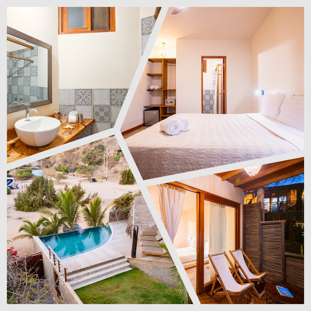 Adobe Villas (4) are located on a pristine spot in the quiet beach of Mancora. Enjoy our beachfront pool, delicious food, outdoor living room and ocean view from each of our villas.