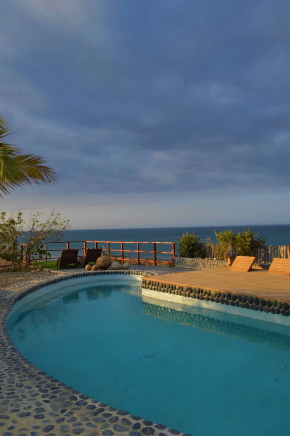 Somos una casa nueva!! ubicados en segunda fila en Las zona de Las Pocitas, Mancora bajo el concepto de barefoot luxury. La casa tiene un dormitorio con una cama king en el primer piso y un altillo con dos camas de plaza y media, baño con ducha al aire libre, cocina, piscina, terraza, area de fogata y area de hamacas. Contamos con una salida privada a la playa a 300 metros de distancia. Somos pet friendly y en la propiedad también vive una gatita llamada tigrita.