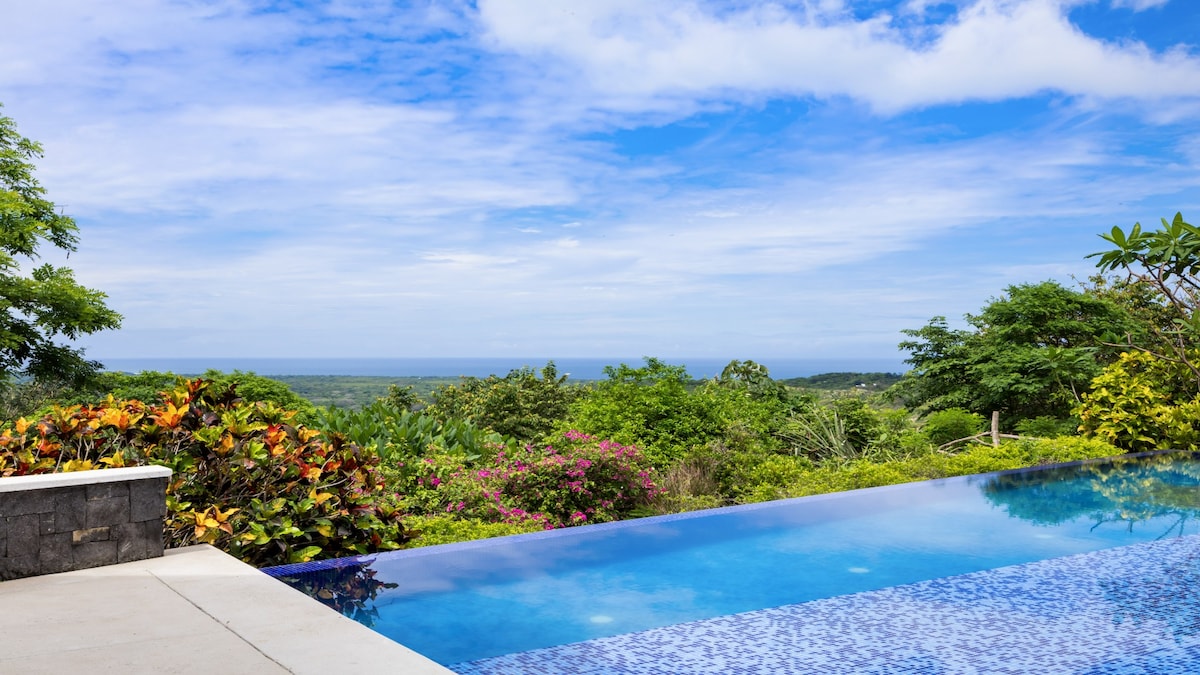 Nestled atop 2.3 wonderful acres in Finca Los Pargos, we're just 8 min from Playa Negra Beach, with all the amenities. Incredible Pacific panoramas & stunning sunsets where wild horses may stop by. The Sky House offers ultimate privacy near endless beaches. An open floor plan with sliding doors to a terrace & pool for ample space to enjoy the jungle views with howler monkeys & rare birds. Only minutes from one-of-a-kind fine dining options in the local area, with unique culinary experiences.