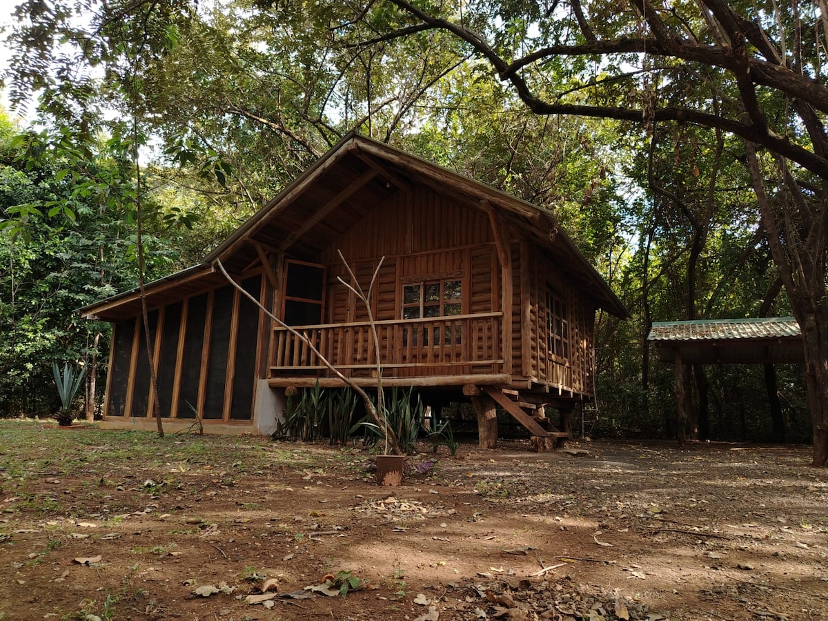 Disfruta de la vista mas espectacular al mar, rodeado de un Bosque seco tropical en un linda cabaña de madera de Teka. A tan solo 20 mts puedes disfrutar de la hermosa playa de arena para nadar y arrecifes para disfrutar de la vida marina. A 10 min. caminando puedes disfrutar de Playa Marbella, uno de los mejores lugares para practicar surf. La propiedad esta ubicada en un loma frente al mar rodeada de un bosque seco, donde podrás disfrutar de la naturaleza y las vistas desde cualquier lugar.