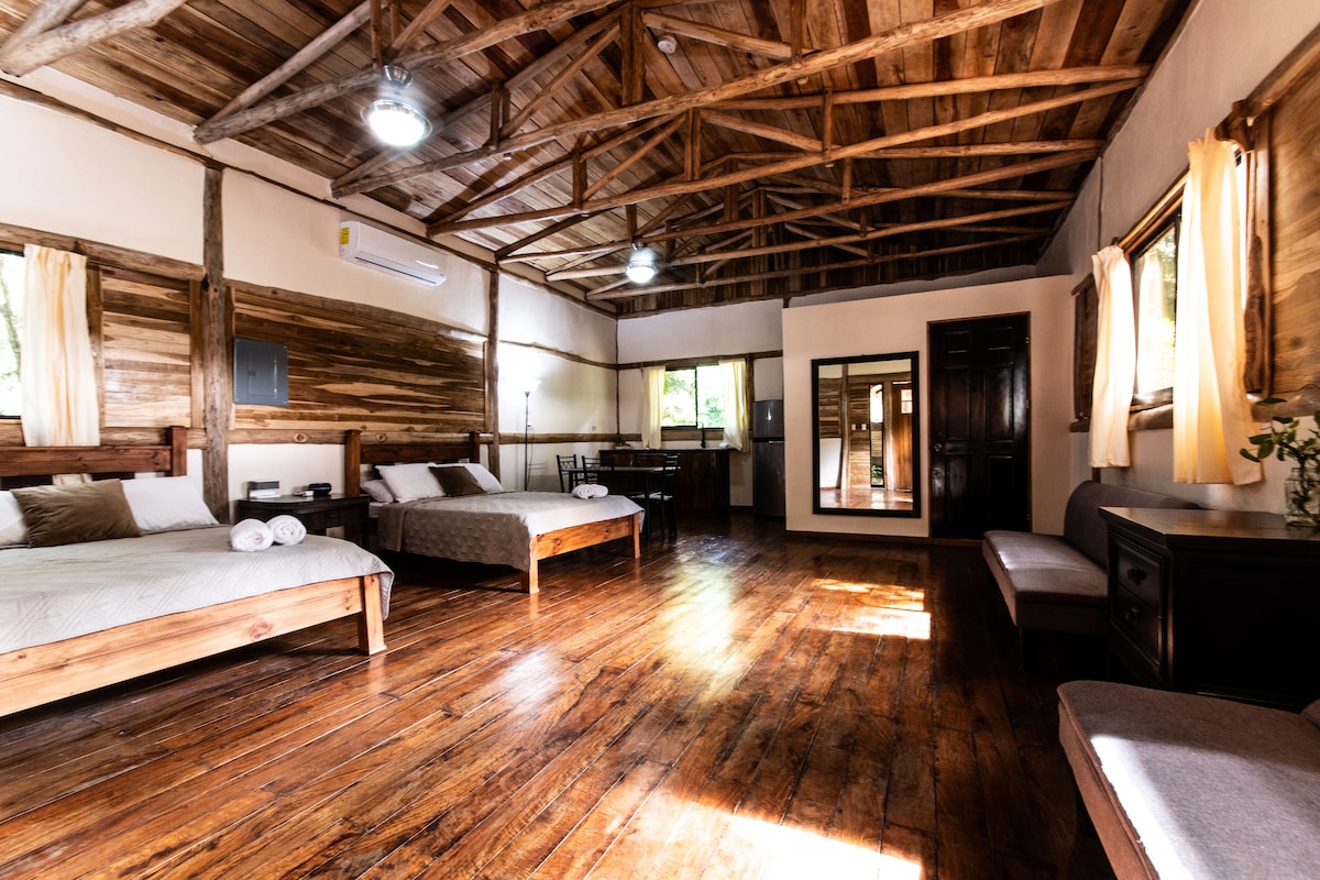 This luxurious studio is the perfect escape for honeymooners, couples, or solo travelers looking for peace, romance, and inspiration. Just 15 minutes from Sámara’s beaches, this villa blends modern luxury with rustic charm. The private infinity pool, open-concept spa bathroom, and unique cordwood wall design make it a truly unforgettable retreat surrounded by the sights and sounds of Costa Rica.