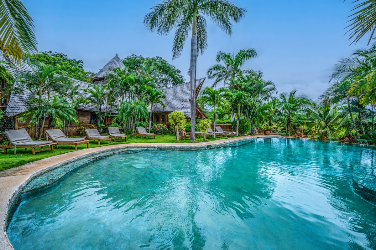 Unique, comfortable, wooden cabin - ideal for nature lovers, who still want to be in walking distance to two beaches and the town of Samara. The cabin is built on piles on a small hilltop. From the terrace you can spot wildlife and relax in the hammock. Take a swim in our newly built pool and cook your meals in the rancho with a fully equipped kitchen and space to enjoy and hang out.