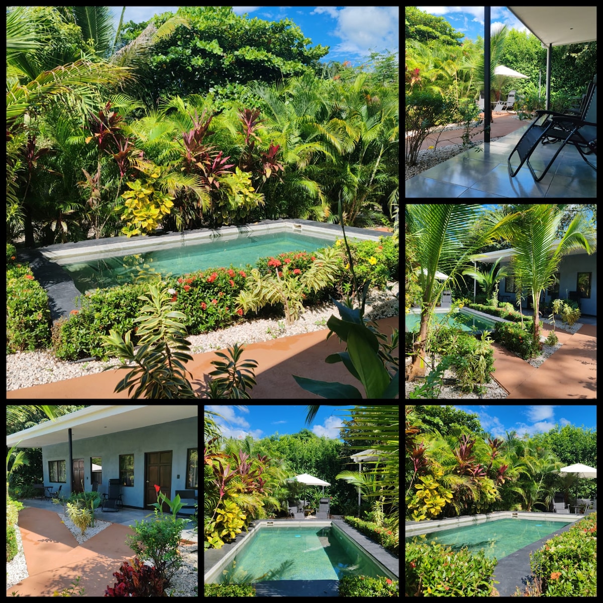 Visit us to enjoy the Pura Vida of the Jungle & Ocean at our Boutique Retreat Center. Wake up to birdsong and howler monkeys, walk amongst the butterflies and dragonflies, go to sleep listening to the waves. Amazing sunsets, ALL the surfing, swimming, snorkeling , fishing or spearfishing at our local beaches. Peaceful and quiet piece of paradise with access to multiple pristine beaches , on the pacific coast of Costa Rica. 1-minute drive/4-minute walking-distance to 8 beautiful beaches.