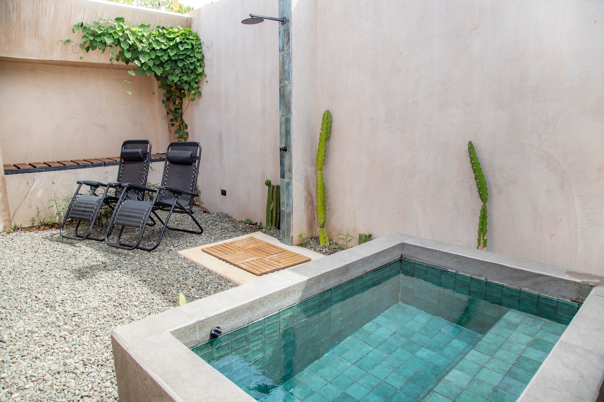 Welcome to Maitri, your cozy getaway! This 2-bedroom, 3-bathroom villa is crafted for comfort & relaxation. Located just an 9-minute stroll from the beach, you'll have the perfect blend of peace & adventure. Stay connected with 200mbit high-speed internet. Enjoy exclusive concierge service & access to Langosta Beach Club included with your stay! We are located in Central Tamarindo next to Tamarindo Night Market. 1 hr from LIR (Liberia Airport) and 4 hrs from SJO (San Jose Airport) by car.