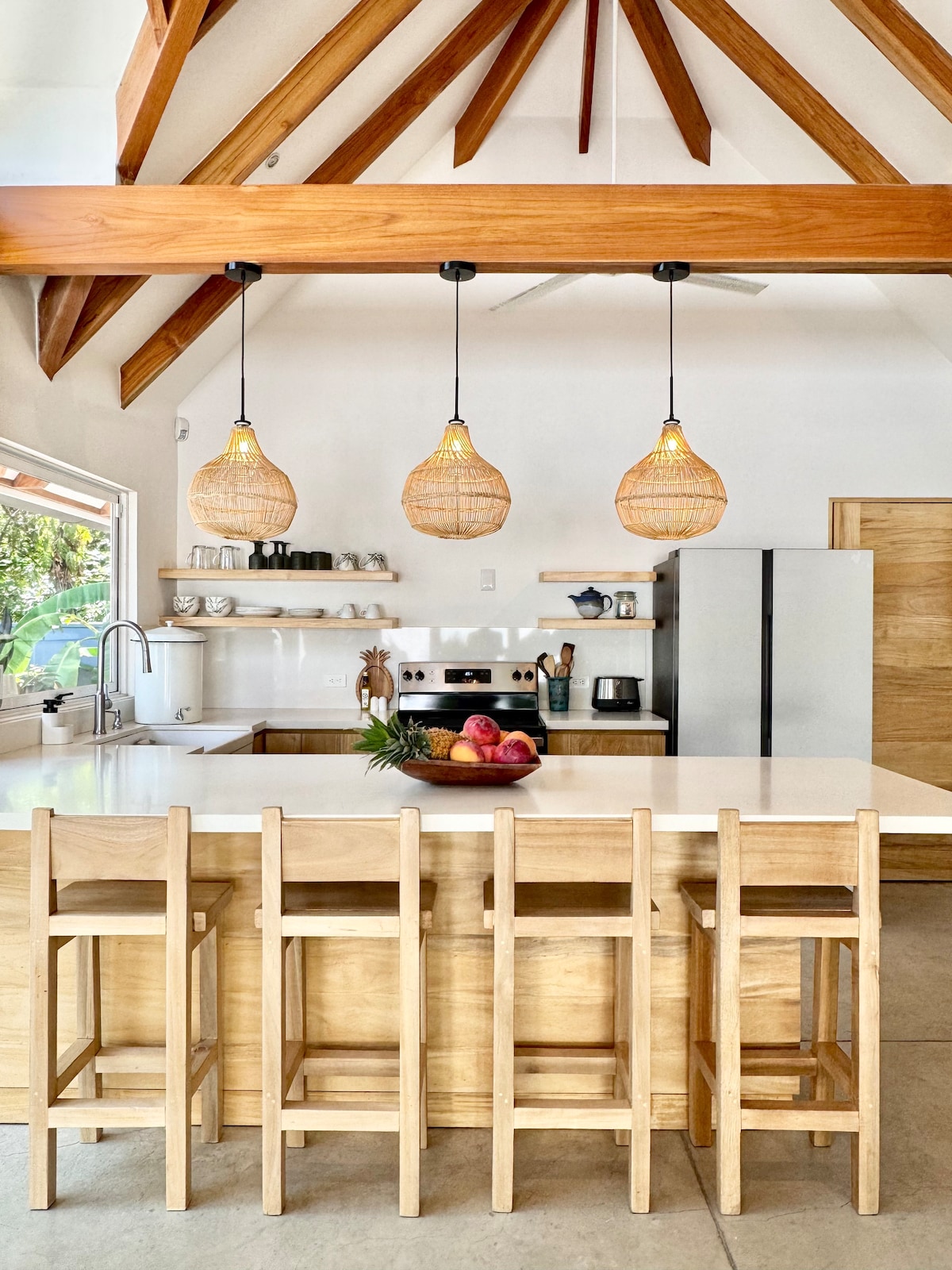 We are a family-owned boutique villa in the heart of Tamarindo, thoughtfully designed for your perfect vacation. Our tropical oasis blends Nordic-inspired modern design with a calm atmosphere. High ceilings, natural light & clean lines create an airy feel. Wood, concrete & white walls bring timeless elegance, and the gardens create a peaceful, natural setting. Your perfect Pura Vida experience!