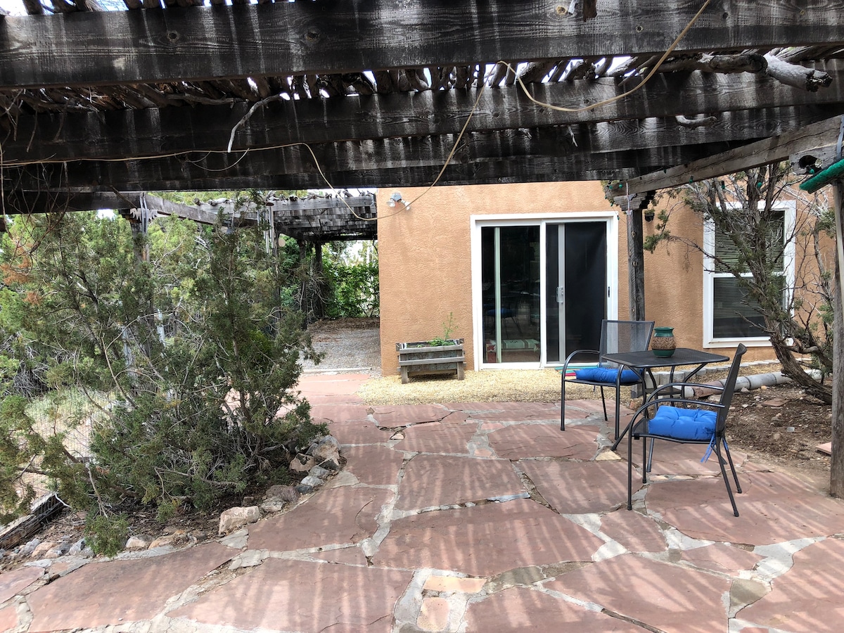 Nestled in an 80 yr old apple & cherry orchard you won't believe you are in the middle the city. This handsome, warm casita has character & is well appointed, (even has Level 2 car charger). This country setting offers privacy & quiet. Here nature, agriculture, charm & amenities mingle. Enjoy a firep on a cold night. Warm days enjoy the cool patio or sit under a tree. Walk to dinner, a brewery or winery. Shopping, Old Town, balloon park 10 min. Single nite stay possible. LR STR #615