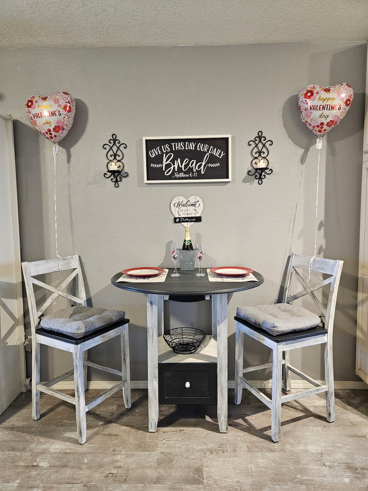 Enjoy a stylish experience. Two-room suite with a bedroom, sitting room, and a full private bath. Accommodates up to 4 adults. There is a private entrance to the suite. King bed, walk-in closet, and a dresser, side tables, ceiling fan w/ light, and a air filtration system. Sitting room has a queen Murphy bed, coffee and wine bar with microwave, mini refrigerator, coffee maker (coffee and tea supplied), and dishes, utensils. Bathroom is Jack and Jill style w/ 2 vanities and standing shower.