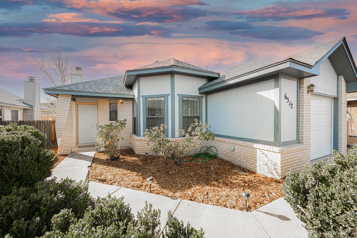 Have fun with the whole family at this stylish place. Great three bedroom 2 bath floor plan with all the amenities you would expect. Fireplace, two TV's with wifi available. Security alarm, privacy fenced back yard. Close to walking and bike trails, parks, great dining . A true gem in a family orientated area of Albuquerque. Home is fully cleaned and sanitized for your protection. Coffee, sugar, creamer and some staples available for your convenience. Feel free to use or not. Enjoy your stay!!
